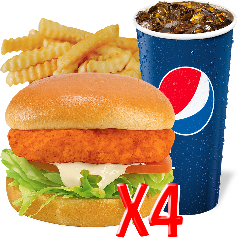 🍟 Combo includes: 4 Chicken Sandwiches 🍗 + 1 Family-Size Fries 🍟 + 4 Medium Drinks 🥤