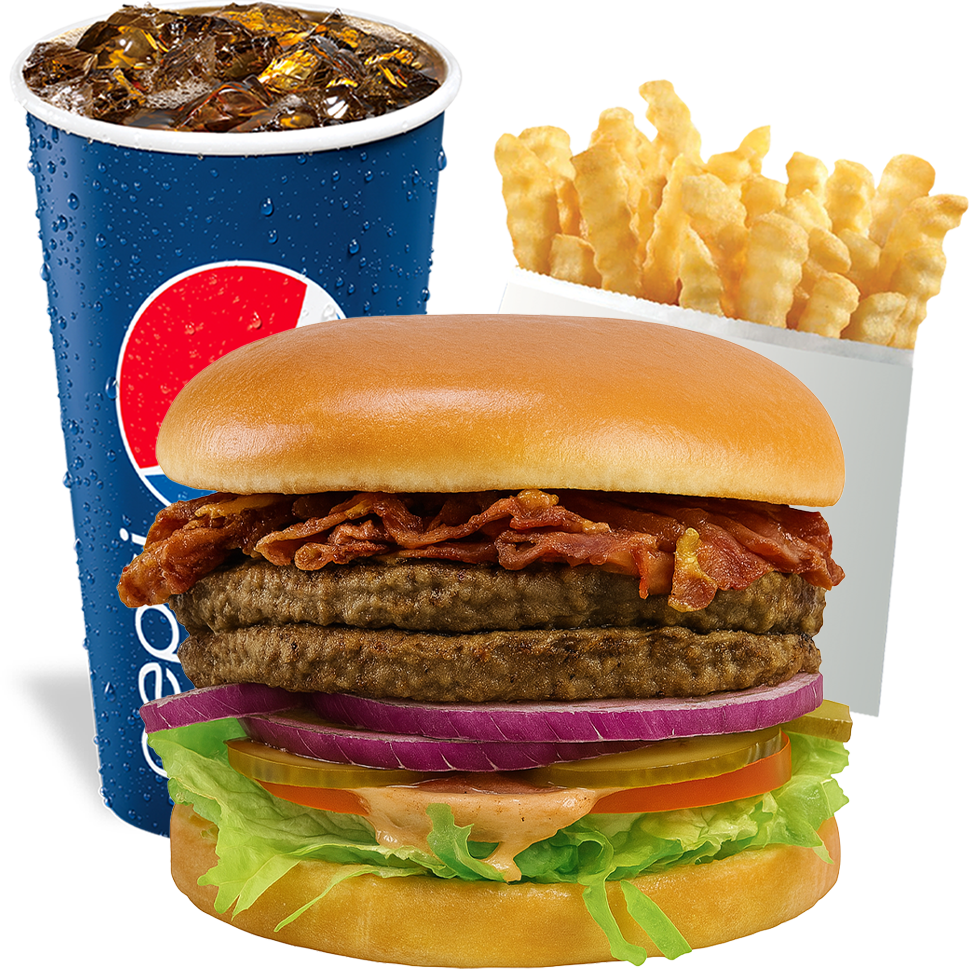 The ultimate feast πππ₯ β double the massive patties, fresh toppings, and house sauce on a toasted bun. Built for those who donβt back down from flavor. π Served with fries and your drink of choice π₯€.