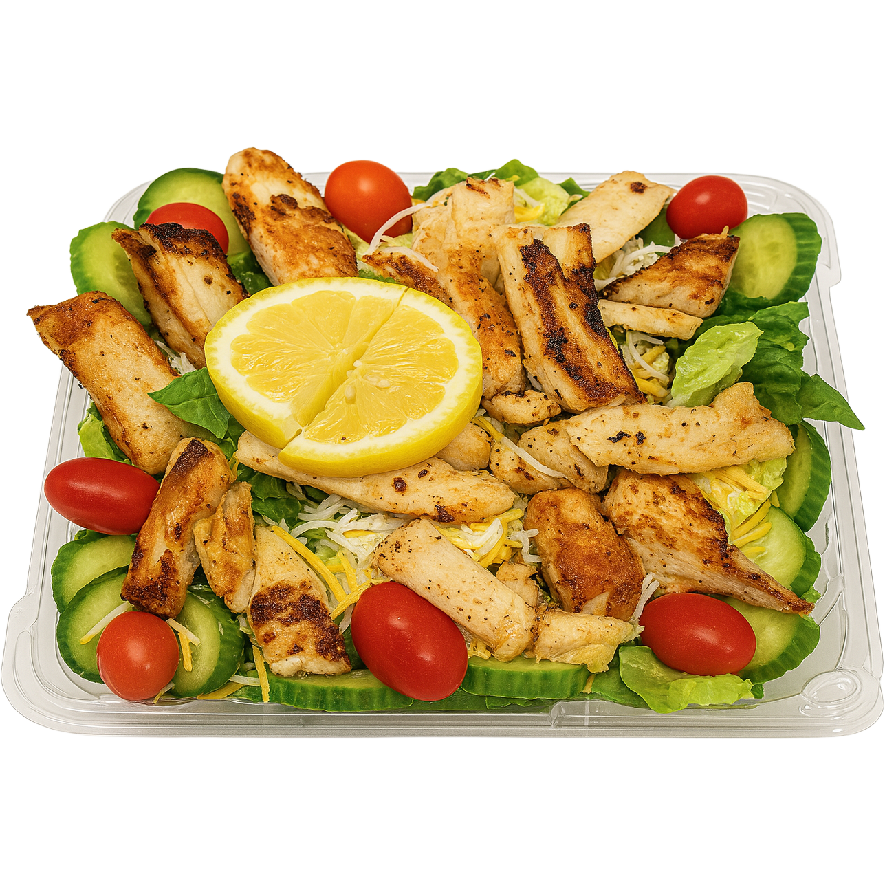 🥗 Fresh greens topped with juicy grilled chicken, red onion, tomato, pickles, and our house dressing for a hearty yet healthy option.